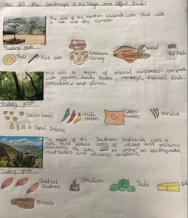 At the beginning of each unit of work, pupil’s prior knowledge is discussed, and clear targets are set which pupils use as a self-assessment tool at the end of each lesson. New vocabulary is introduced throughout the unit of work, which is clearly defined and clarified so that pupils can use it in context. In order to embed their new knowledge and understanding into their long-term memory, opportunities are given to regularly recap and review their learning through questioning, quizzes and the use of classroom displays. By the end of Year 6, children will have a chronological understanding of British and world history from the Stone Age to present day.